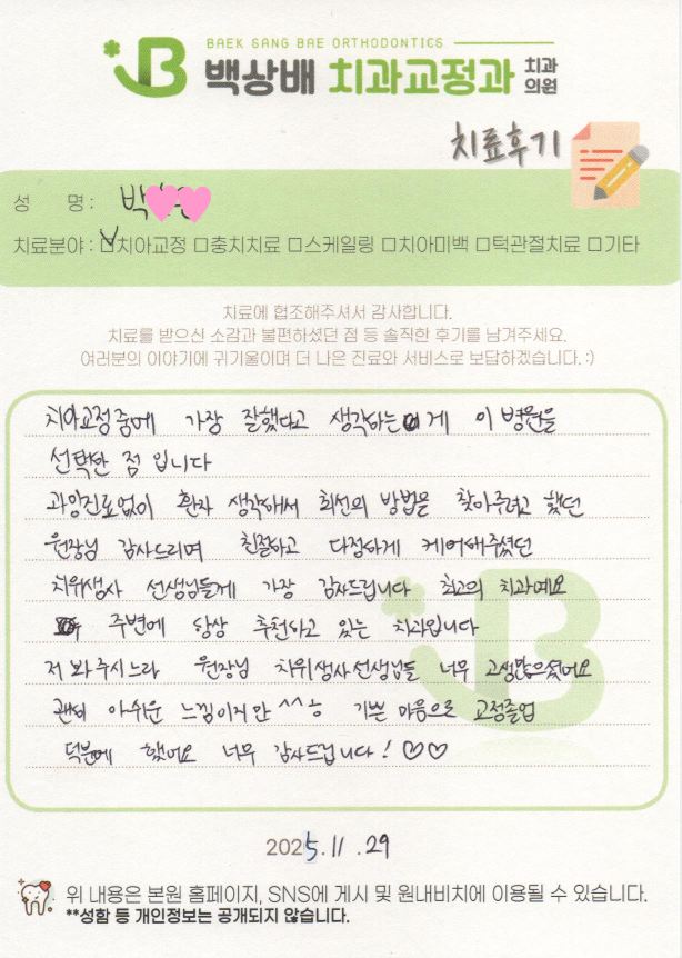 교정전문의 1인 원장체계로 정직한 진료, 퀄리티 높은 치료결과, 바뀌지 않는 평생주치의를 표방합니다.