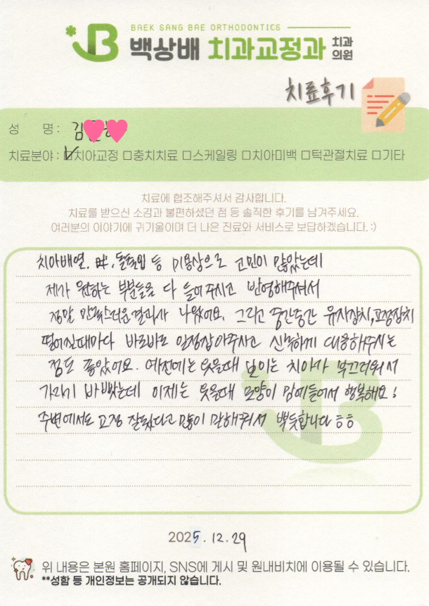 교정전문의 1인 원장체계로 정직한 진료, 퀄리티 높은 치료결과, 바뀌지 않는 평생주치의를 표방합니다.