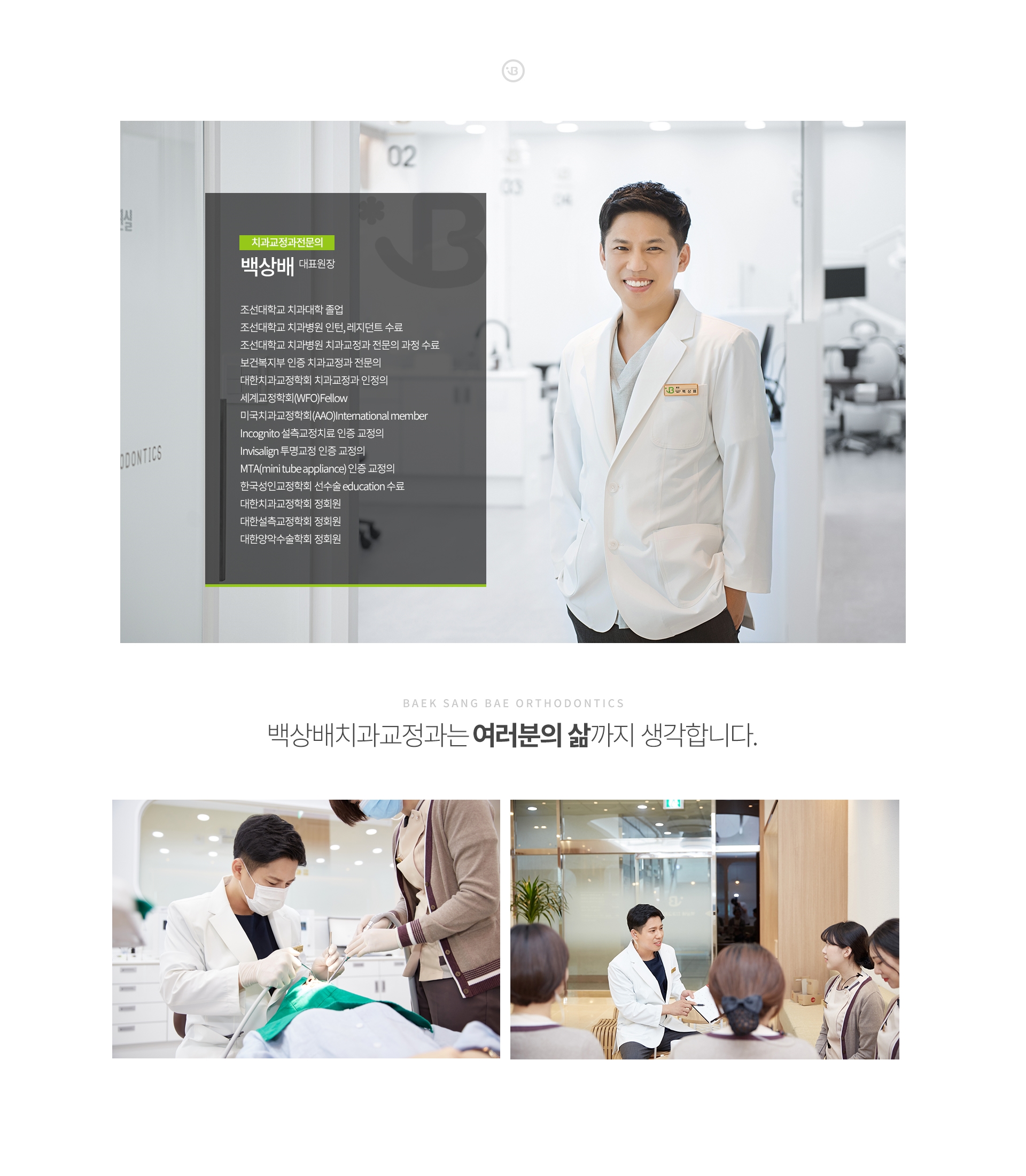 교정전문의 1인 원장체계로 정직한 진료, 퀄리티 높은 치료결과, 바뀌지 않는 평생주치의를 표방합니다.