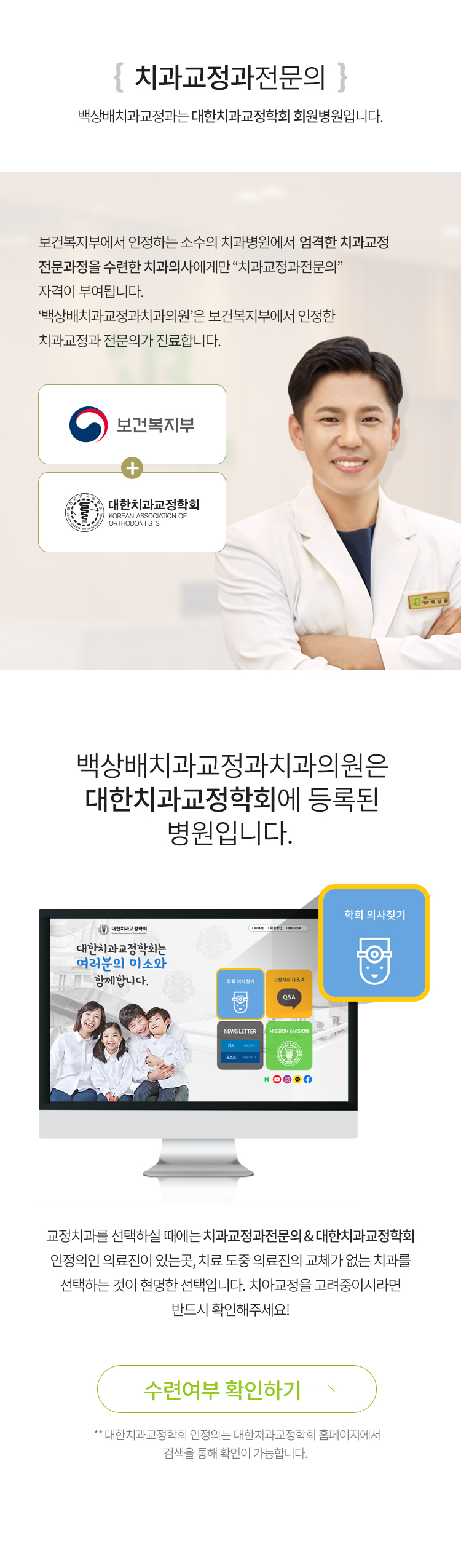 교정전문의 1인 원장체계로 정직한 진료, 퀄리티 높은 치료결과, 바뀌지 않는 평생주치의를 표방합니다.